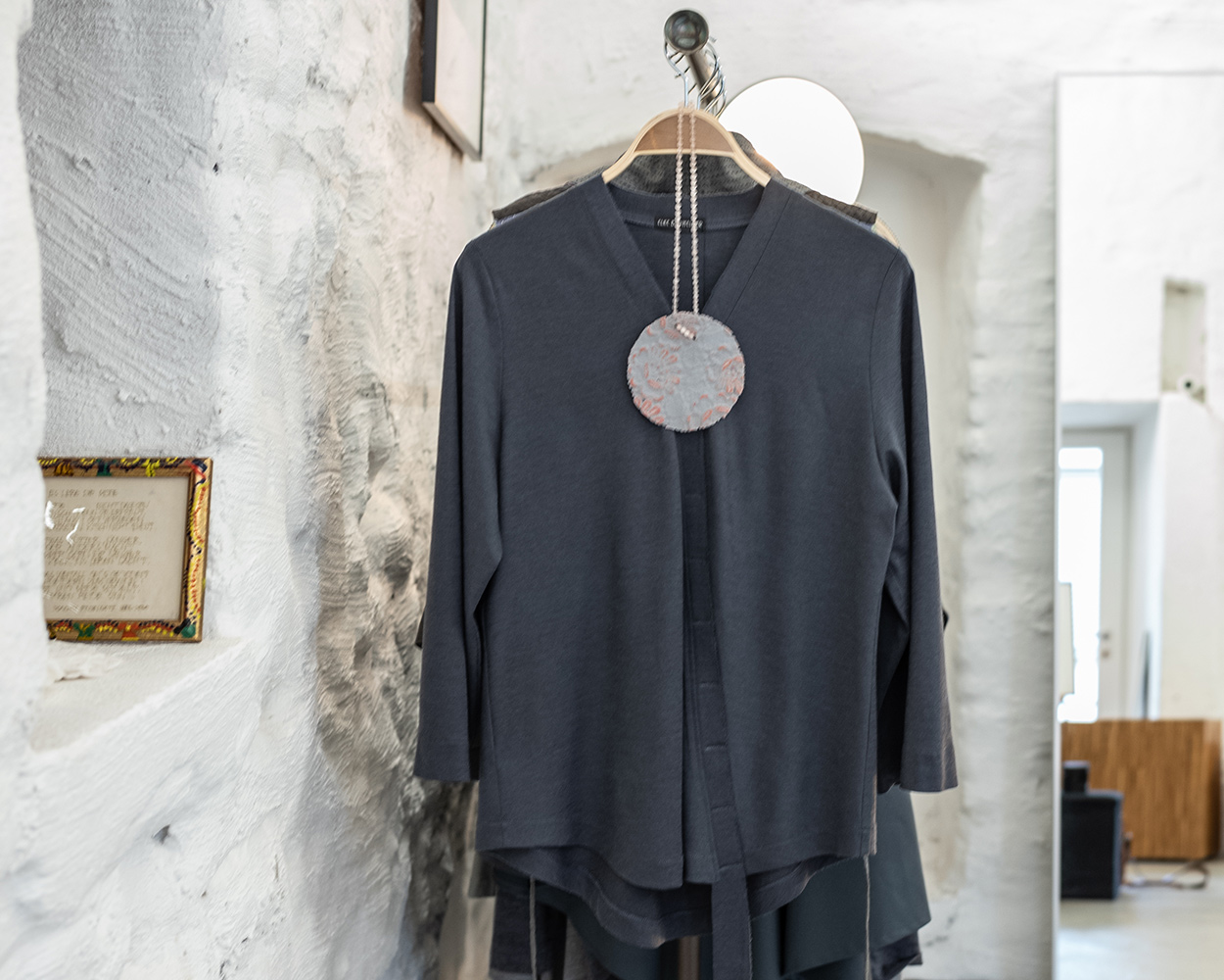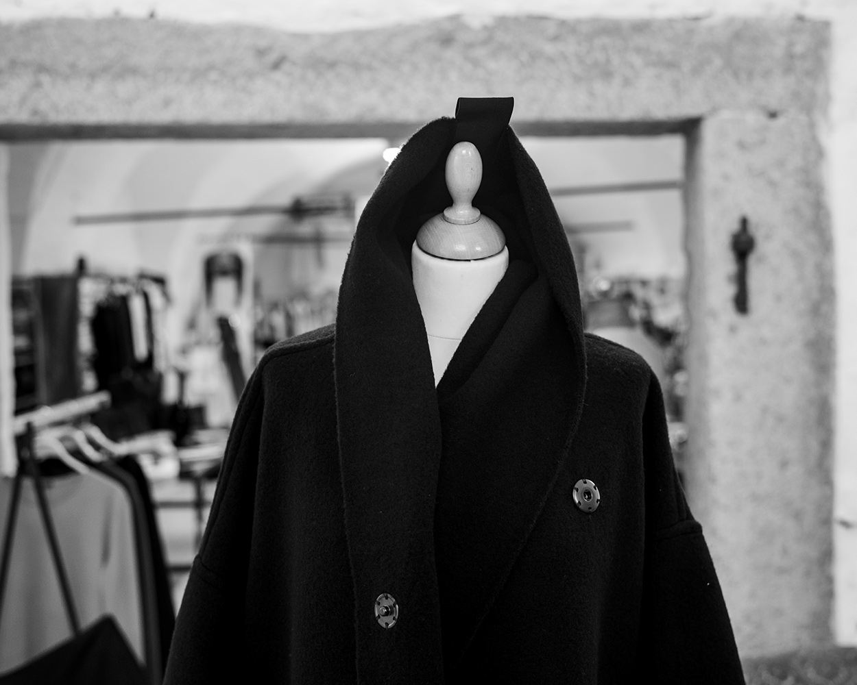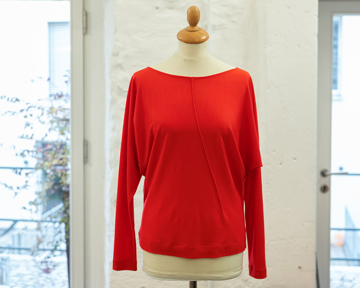 Ein japanisches Oberteil aus Merinojersey aus kbT (kontrolliert biologischer Tierhaltung). Manchmal brauchen wir die Zurückhaltung. Eine Form, die uns einen Rahmen gibt. Der Innhalt sind wir selbst.