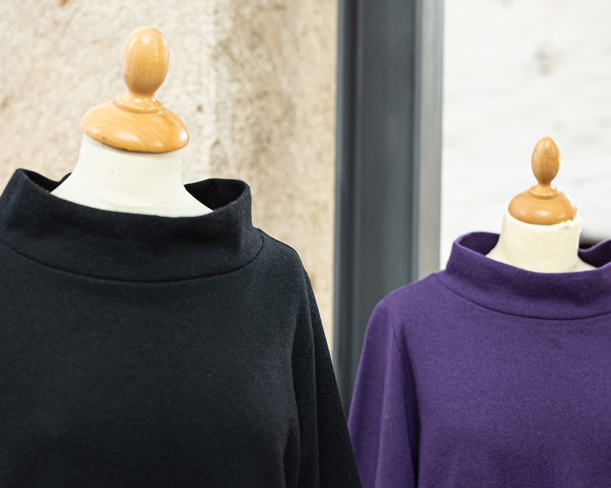 Oberteile aus Meinostrick aus kbT (kontrolliert biologische Tierhaltung). Schlicht. Pur. Edel. Einmal mit japanischer Ärmelvariante, einmal ohne. Je nachdem, wie groß das Verlangen nach Außergewöhnlichem ist.